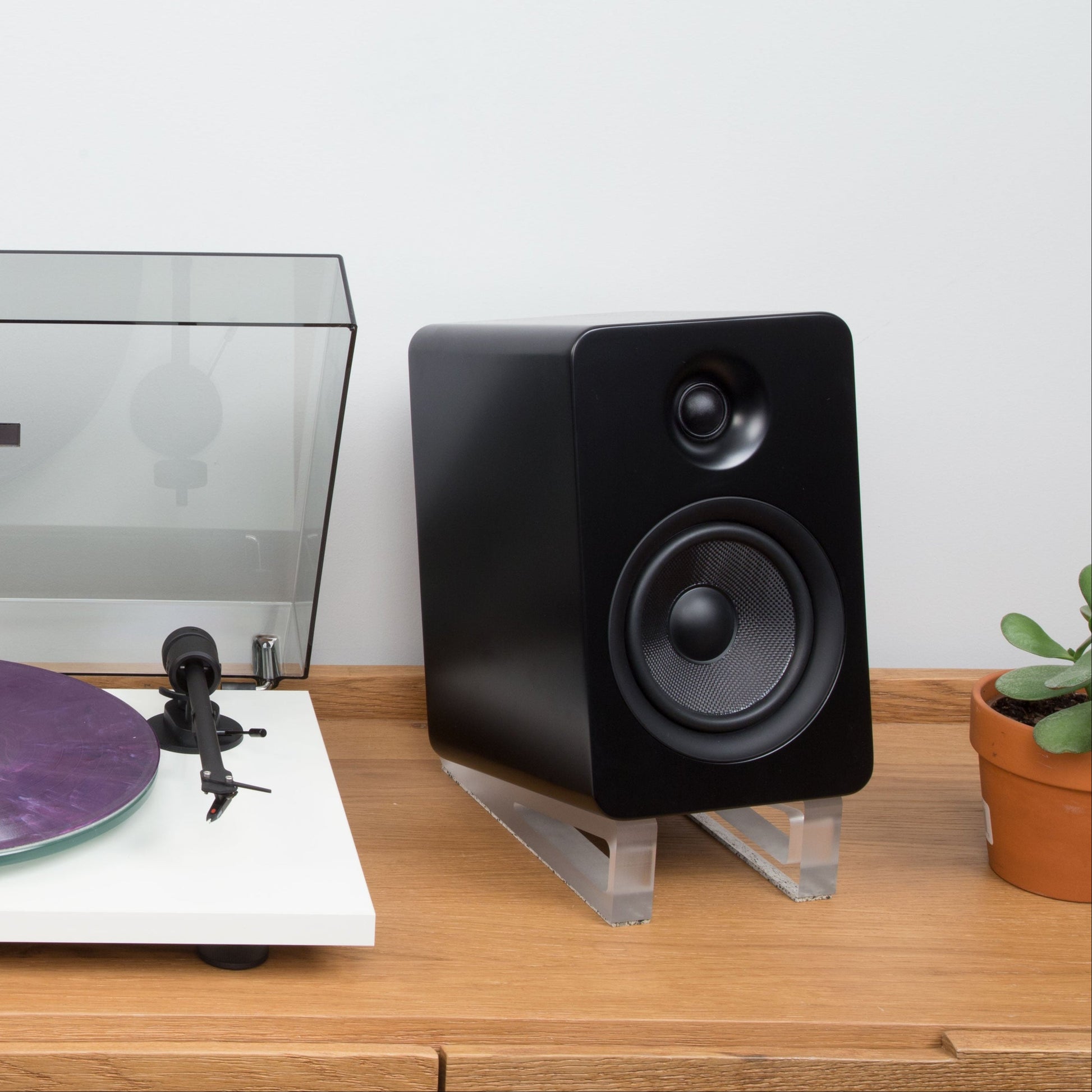 - adjustable, universal fit will work with most Bookshelf Speakers (Audioengine, Kanto, Elac, Edifier, Dali etc)