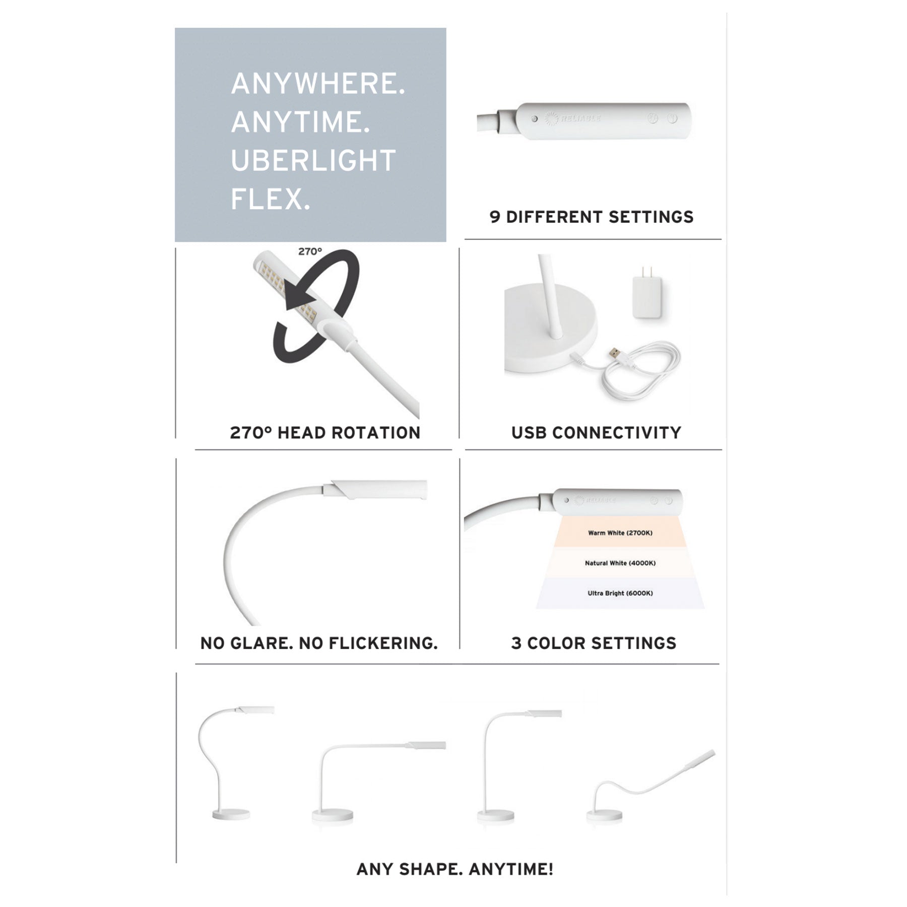 Reliable Corp.: UberLight Flex Turntable Lamp - Black / Tabletop Model